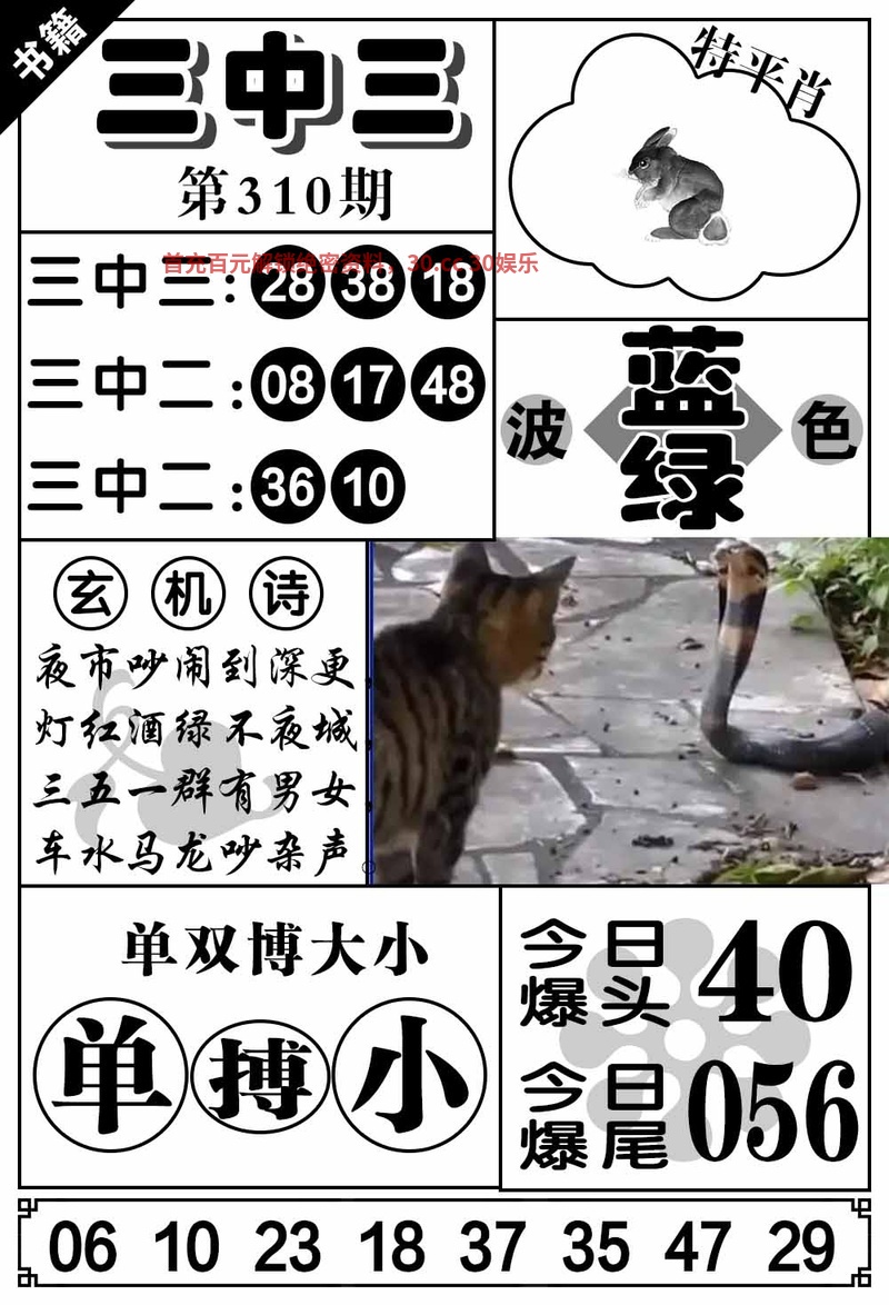 | 310期 | 兔 | 绿双 | 1头 | 9尾 | 开發00 |